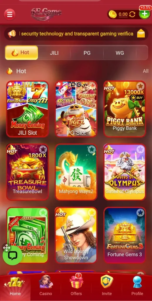 6e Game is an online gaming and casino-style app where players can enjoy slots, card games, live casino, and prediction challenges with the chance to win cash rewards.