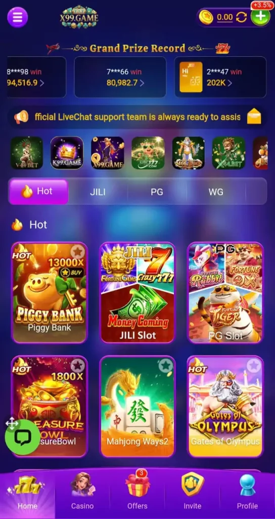 One major advantage of X99 Casino Game is its simple design, which makes it suitable for beginners. The app runs smoothly and does not consume too much device storage.